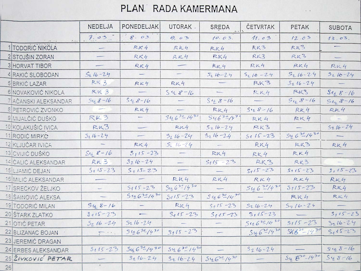 Raspored za 07. do 13. mart 2010. godine